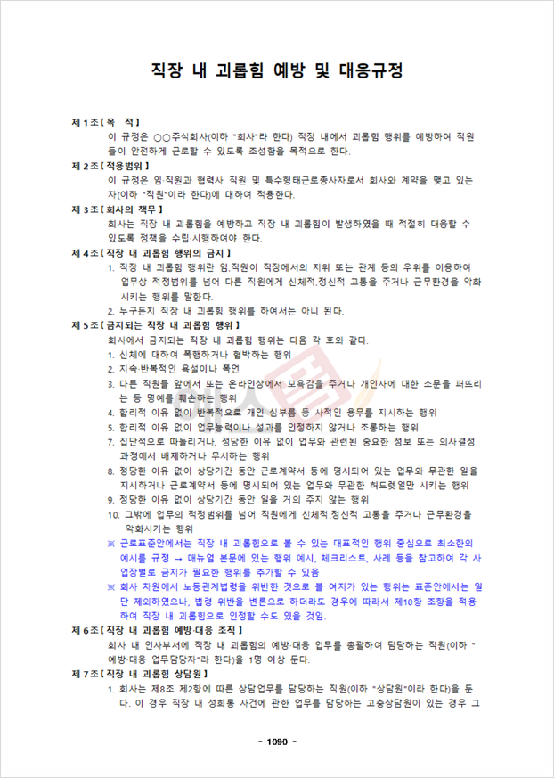 직장 내 성희롱, 괴롭힘 예방 및 대응규정