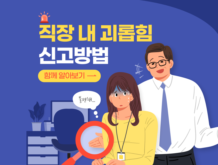 혹시 직장 내 괴롭힘을 당해보신 경험이 있으신가요? 많은 직장인 분들이 알게 모르게 사회에 나와서도 직장 내 다른 사원들로부터 괴롭힘을 당해 정신적인 고통을 호소하고 계시는데요. 직장 내 괴롭힘은 별도의 법적 제도가 마련되어 있어 이러한 상황을 겪고 계신 분들이 억울한 괴롭힘을 당하지 않도록 보호해 주고 있습니다.