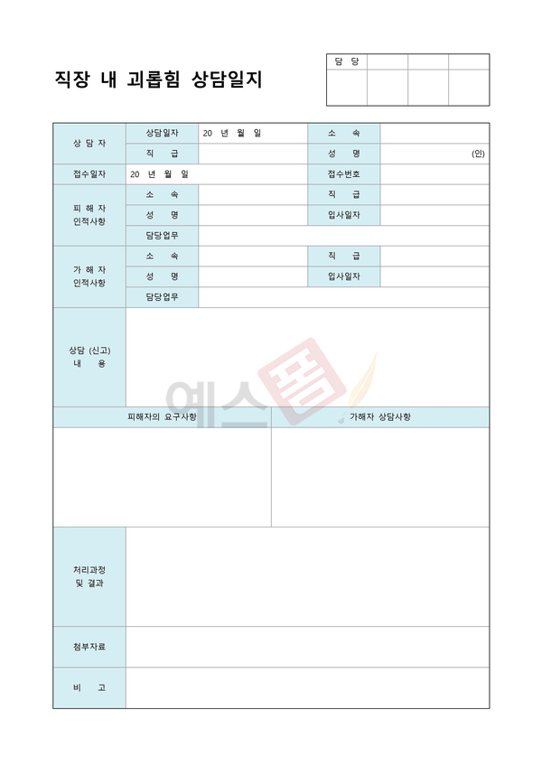 직장 내 괴롭힘 상담일지
