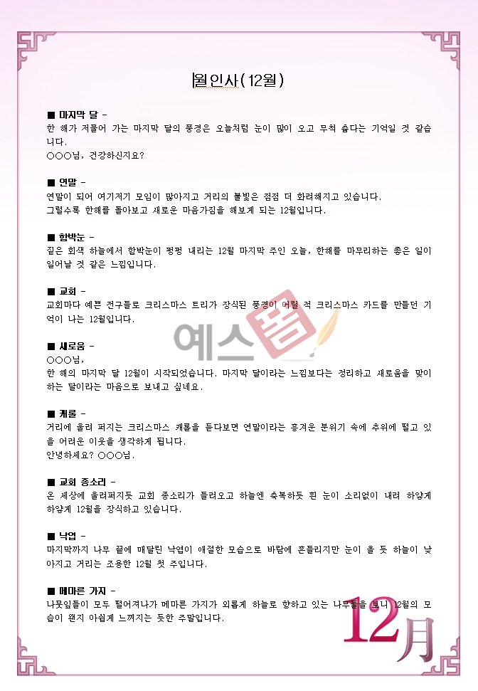 🎄 예스폼 추천 12월 인사말 관련 양식