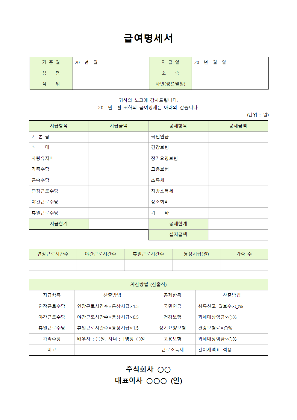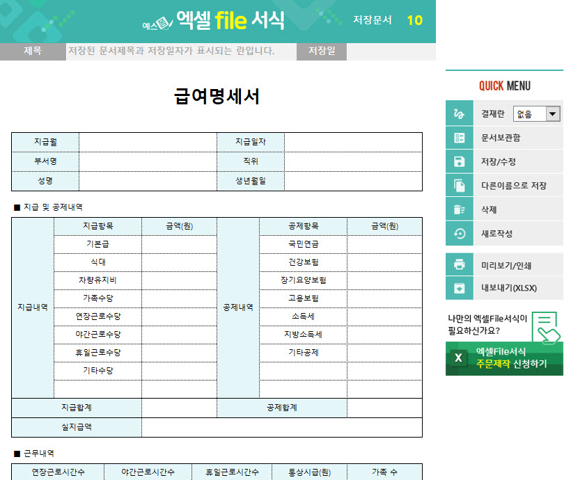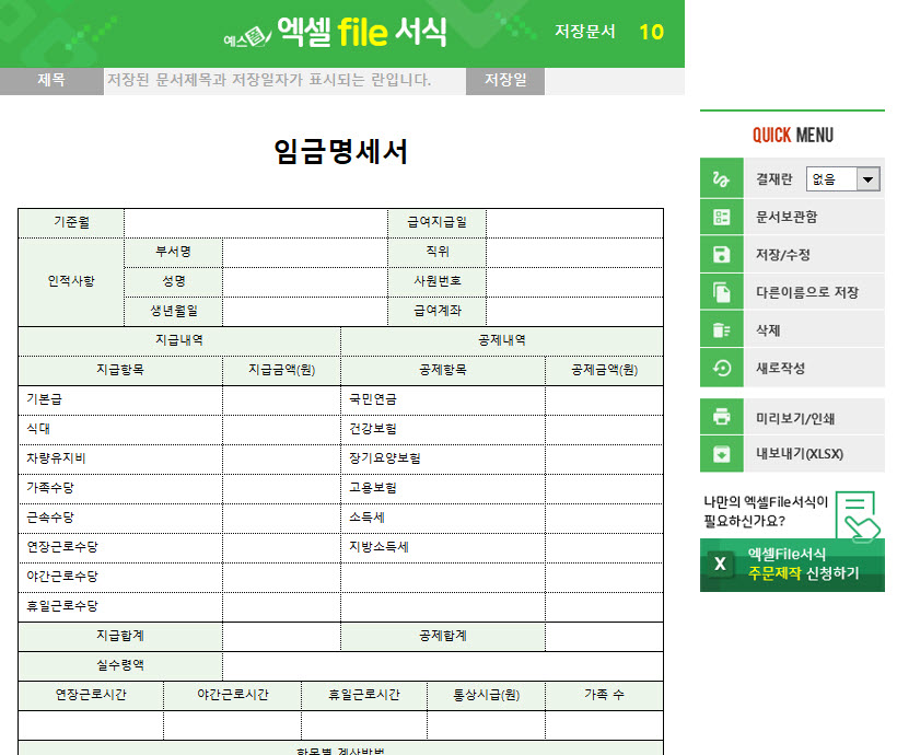 급여명세서(임금명세서) 양식