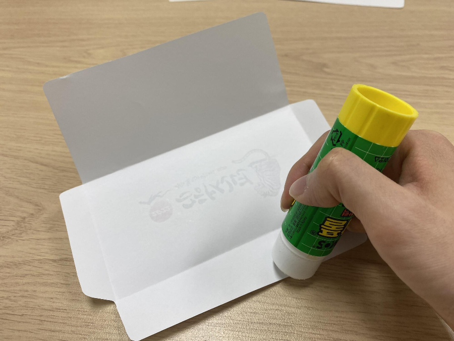 접는 선을 따라서 봉투를 접고 겹쳐지는 부분을 풀로 붙여주세요.