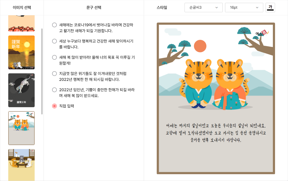 원하는 인사말 이미지를 선택하고 문구를 직접 입력하실 수 있습니다.