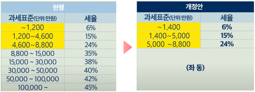 2. 소득세 과세표준 구간 조정