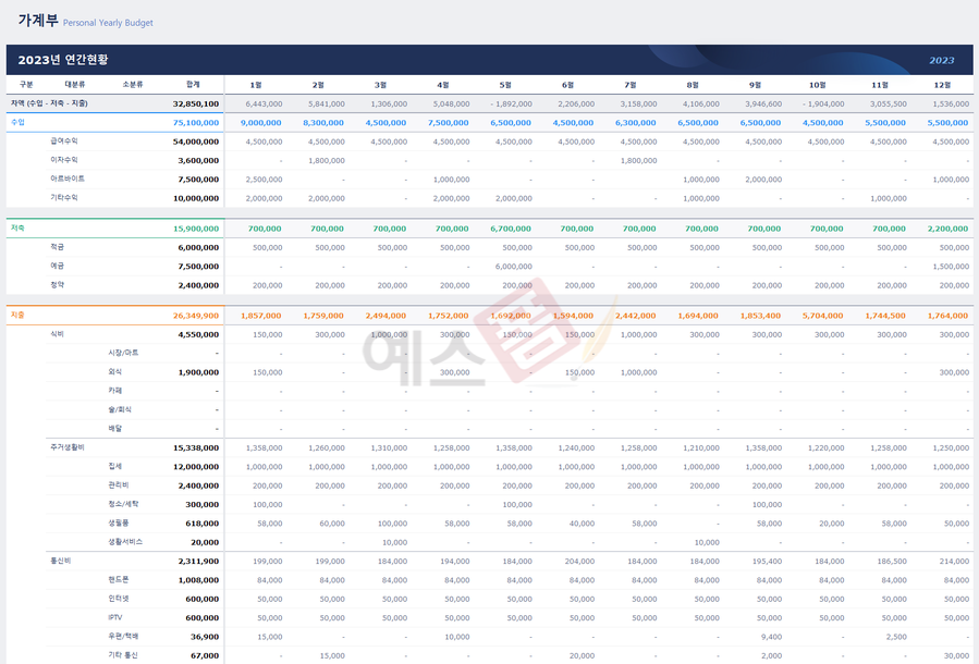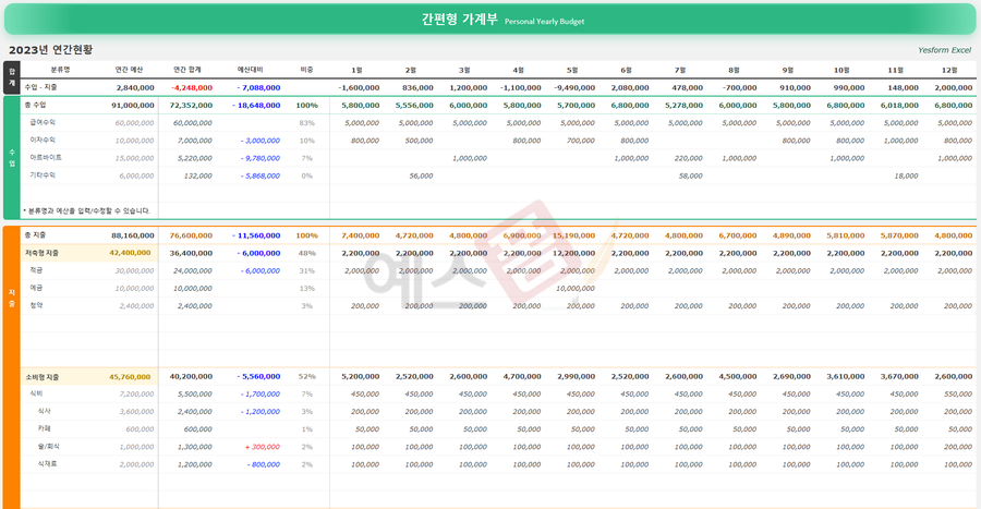 가계부_Personal Yearly Budget - 예스폼 엑셀서식