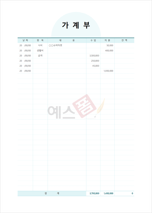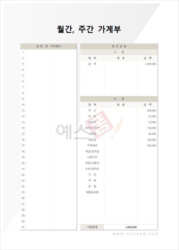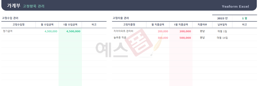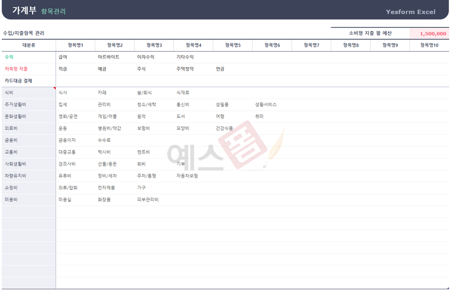 가계부 관리대장 - 예스폼 엑셀서식