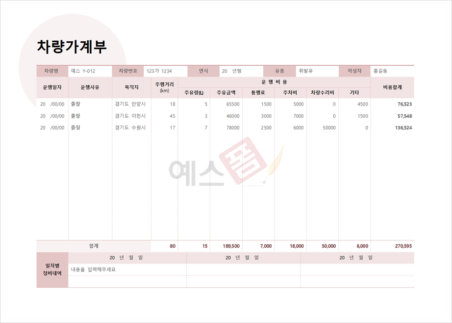 | 월간 가계부 (총 자산 표시) | 차량 가계부 (운행비용) | 월간 가계부 (표준 형식) |