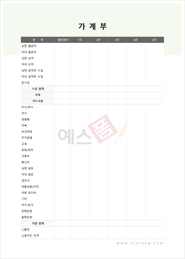 가계부 관리대장 - 예스폼 엑셀서식