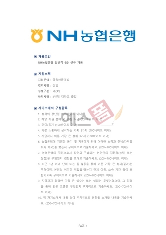 | 기업별 공채 자기소개서 (NH농협은행/금융상품개발) |