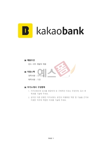 기업별 공채 자기소개서 (카카오뱅크/서버개발) |