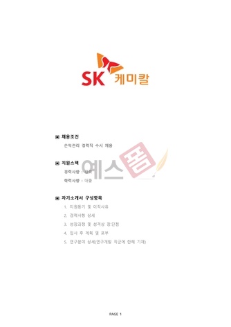 | 기업별 공채 자기소개서 (SK케미칼/손익관리) |