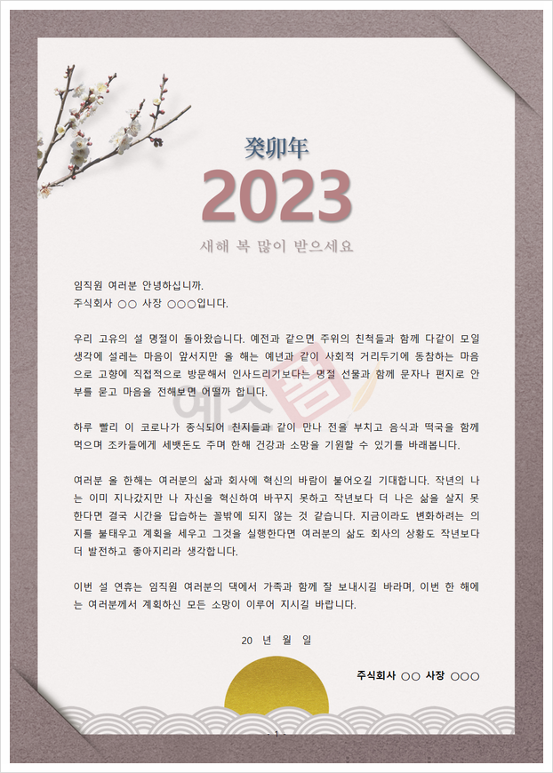 | 설날 인사말 (거래처) | 설날 인사말 (건강, 투자) | 설날 인사말 (대표이사) |