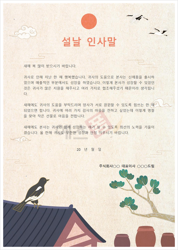 | 설날 인사말 (거래처) | 설날 인사말 (건강, 투자) | 설날 인사말 (대표이사) |