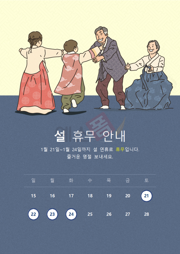 | 설 연휴 휴무 안내문 (휴무 기간) | 2023 설날 휴무안내문 (세로) | 2023 설날 휴무 안내문 (휴무 일정) |