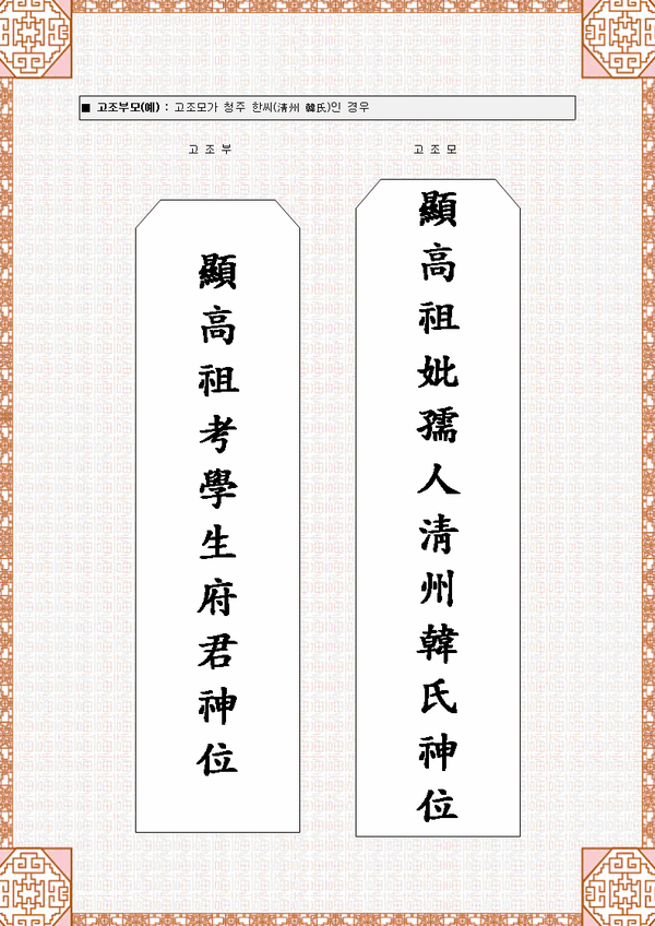 | 지방 예문 모음집 | 조부모 지방(한자) |