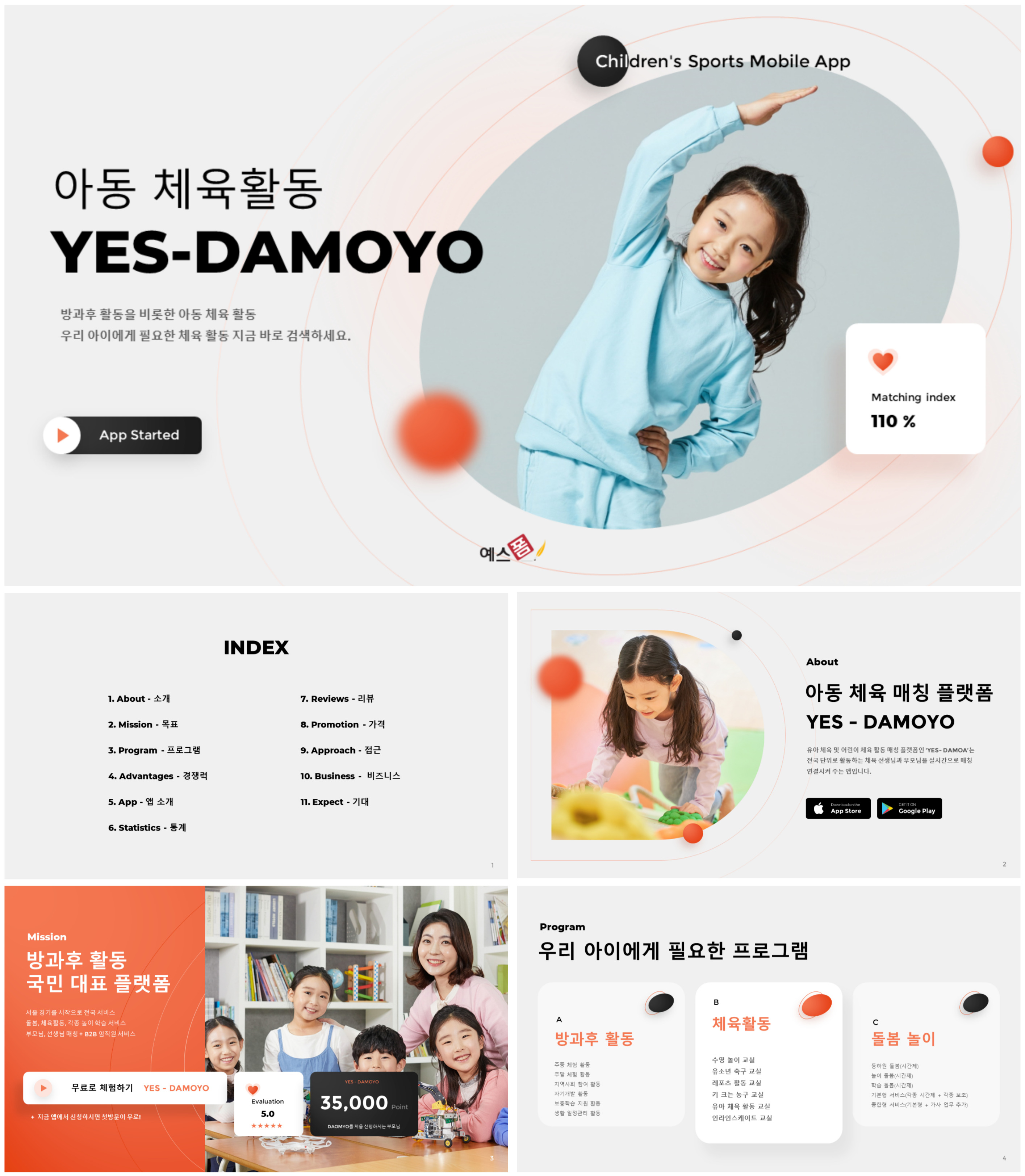 | 동네 장보기 APP 투자제안서 | 아동 체육활동 사업계획서 |
