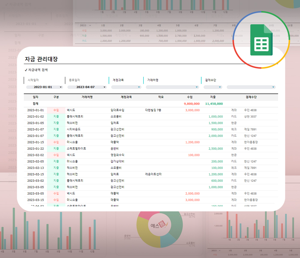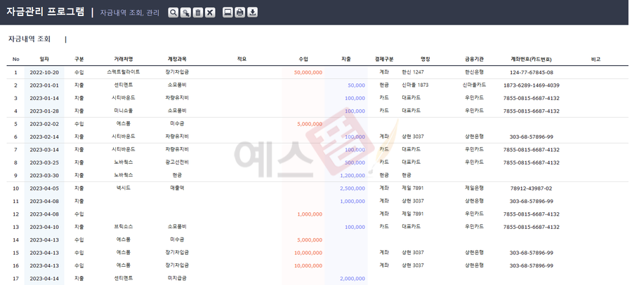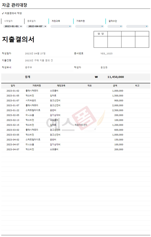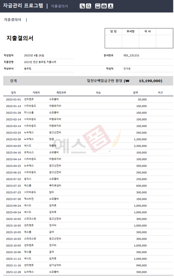 NEW 자금관리 Program(수금/지급, 지출결의서 자동작성) - 예스폼 엑셀서식