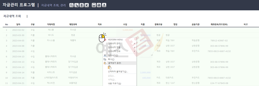 01. <예스폼 전용> 마우스 우클릭 기능 제공