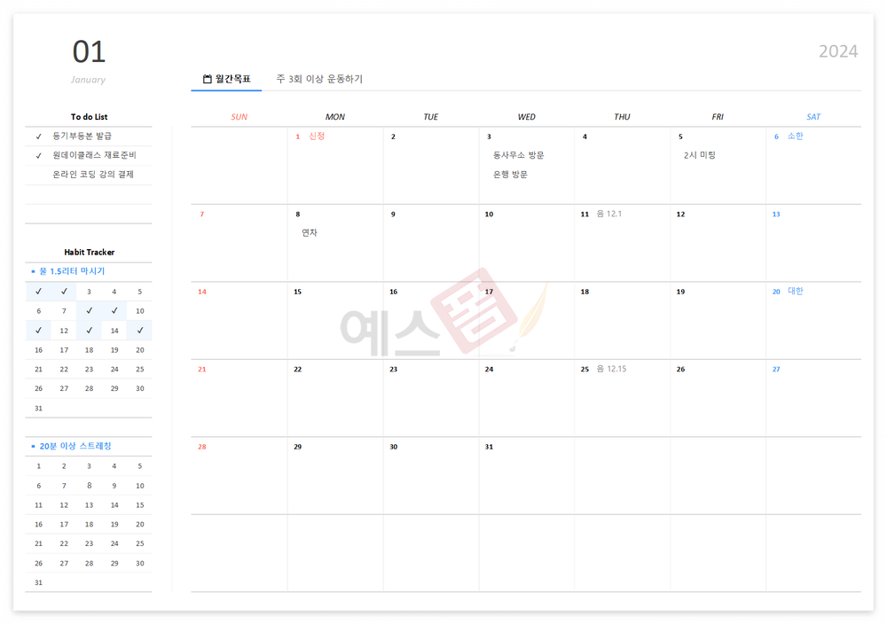 [2024년] 월간목표 습관달력