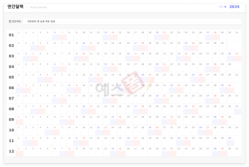 2024년 만년 연간달력 (월간목표, 만다라트)