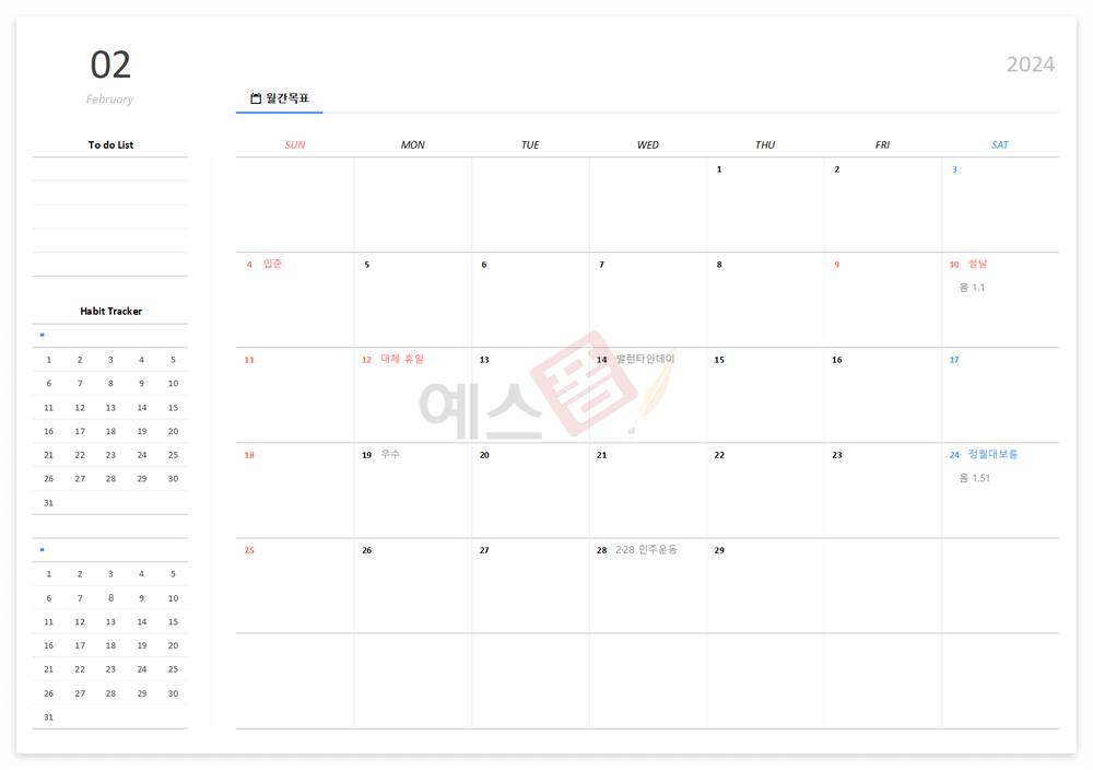 2024년 월간목표 습관달력