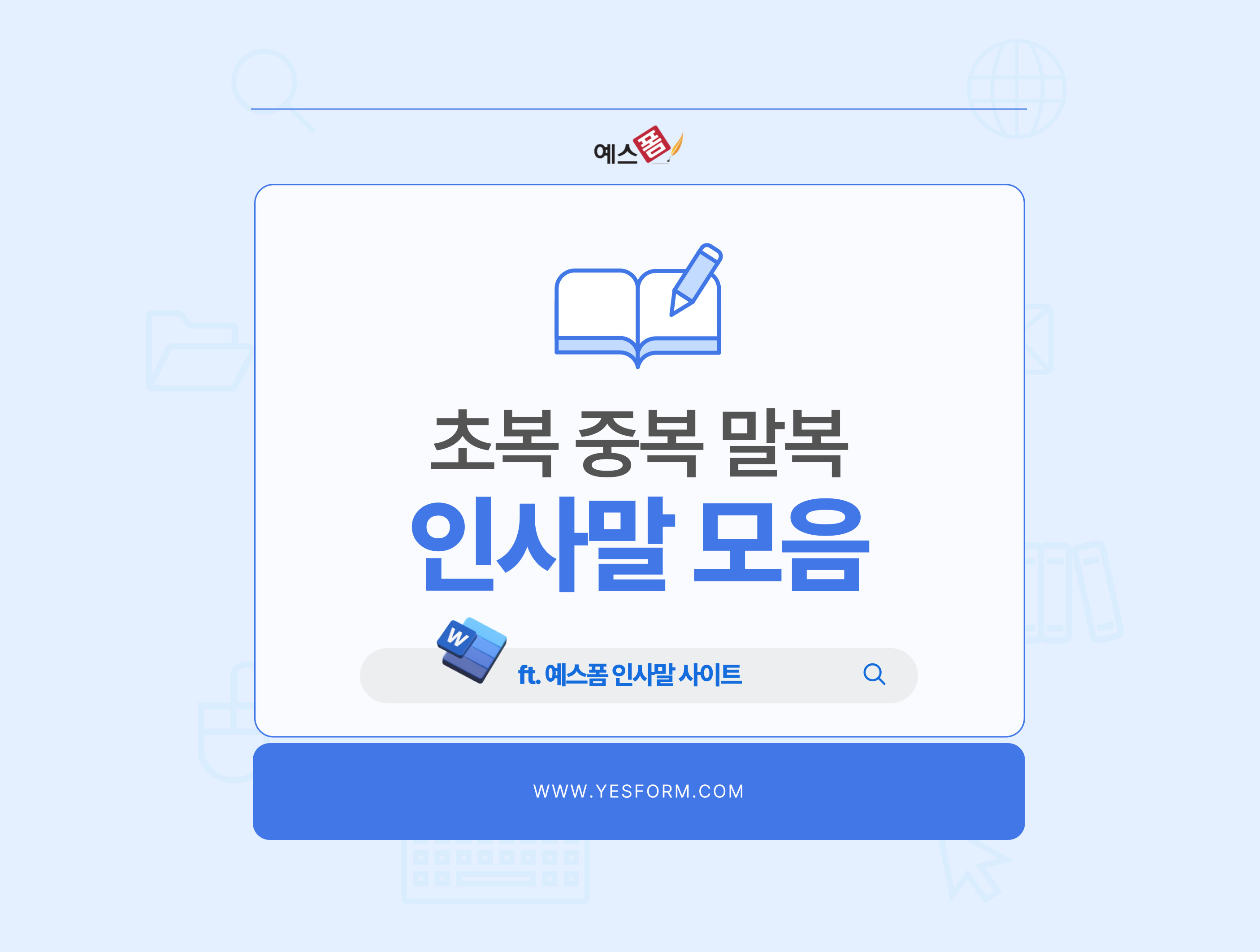 오늘은 예스폼에서 초복 중복 말복 인사말 (feat. 예스폼 인사말 사이트)에 대해서 알아보도록 하겠습니다.