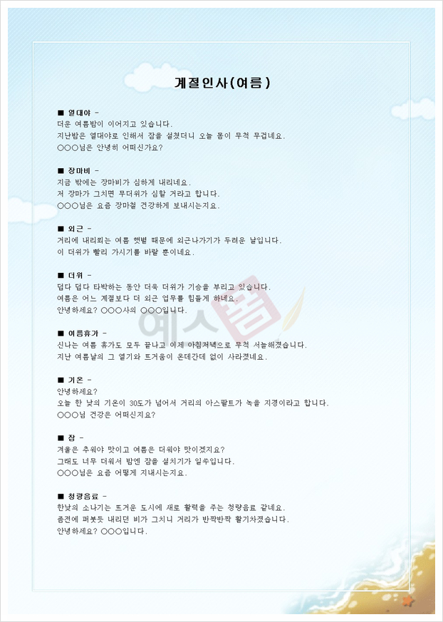 ✅ 예스폼 (인사말) 여름 계절 인사(30개 예문 모음)