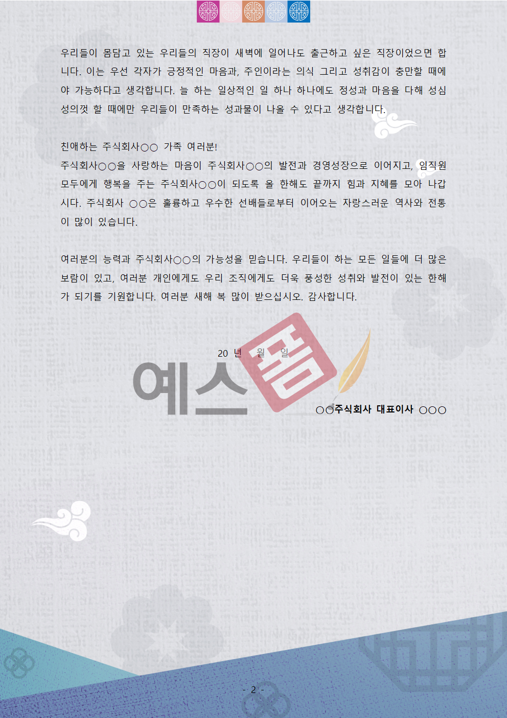 | [2024년] 시무식 안내문 | [신년사] 시무식 인사말(2024년) | [2024년] 시무식 안내문(회사) |