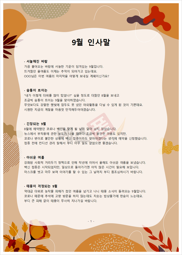 (인사말) 9월 인사말(15개 예문모음)