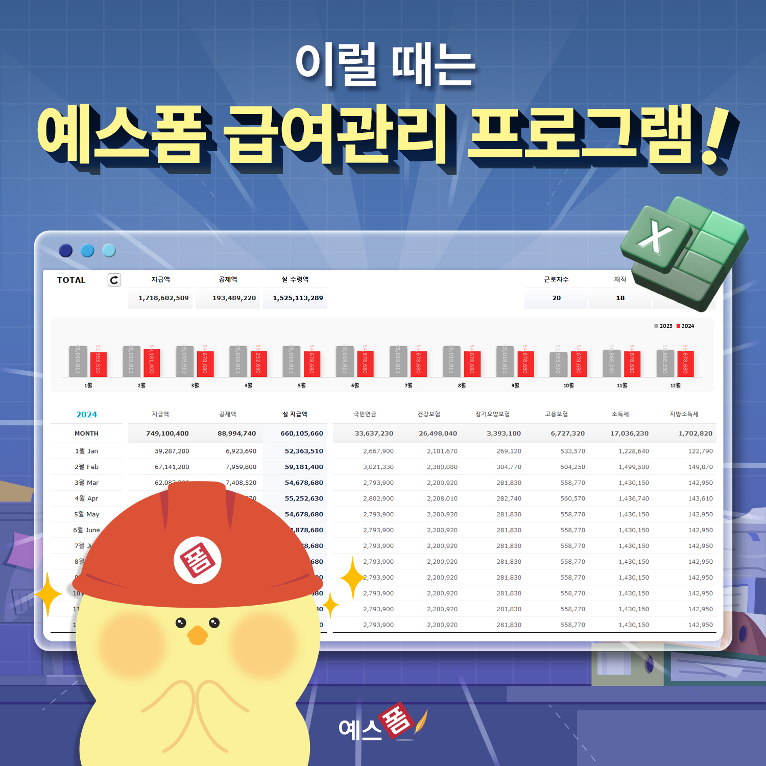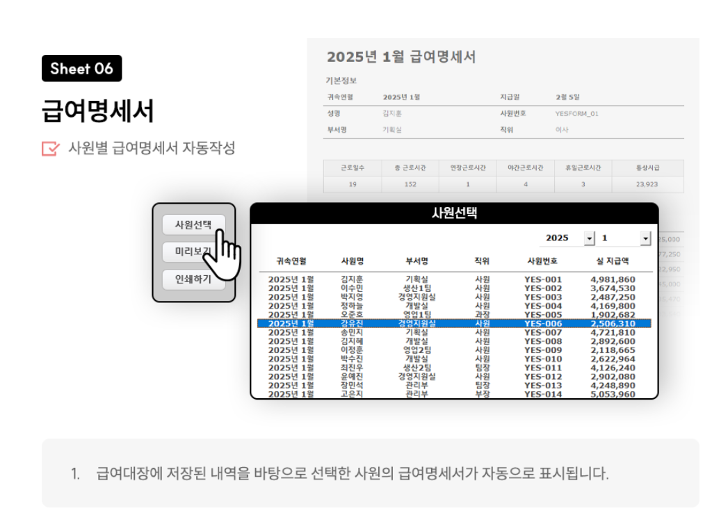 [2025년] 급여관리 프로그램(급여계산, 급여명세서 작성, 4대보험 요율 자동업데이트) - 예스폼 엑
