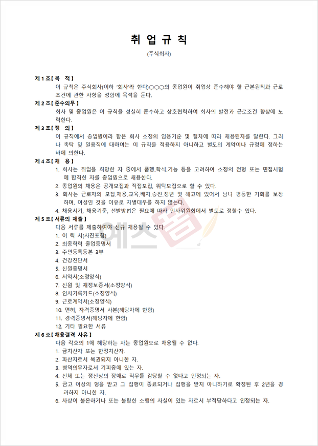 🏢 [2025년 개정] 채용규정, 취업규칙 및 별지 서식