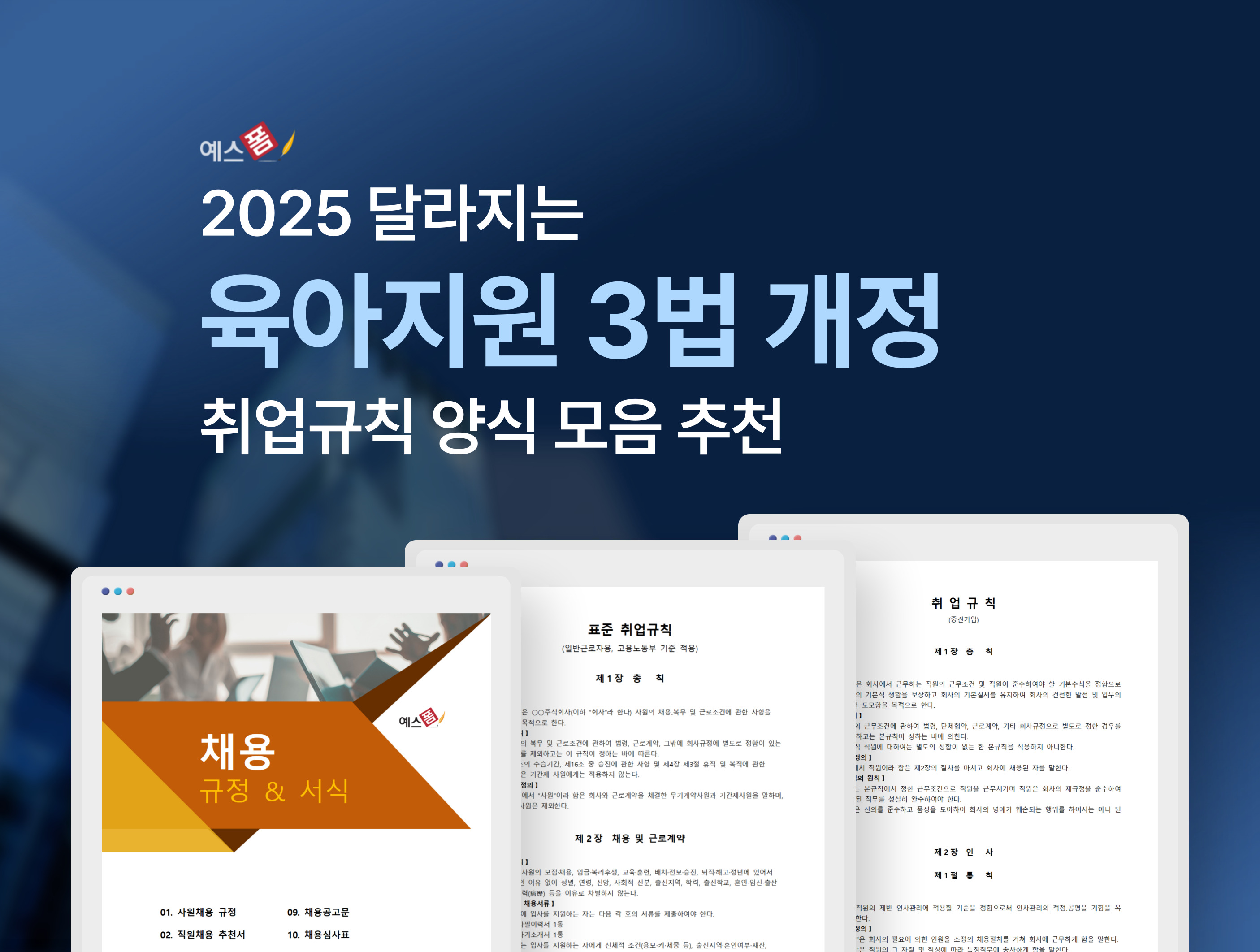 오늘 포스팅에서는 달라지는 육아지원 3법 개정 내용을 알려드리고 육아지원 정책 개정이 반영된 예스폼 회사 취업규칙 양식 예시 모음을 소개드릴 예정입니다. 보다 쉽게 개정 내용을 적용하고 싶으시다면 참고해 보시기 바랍니다.