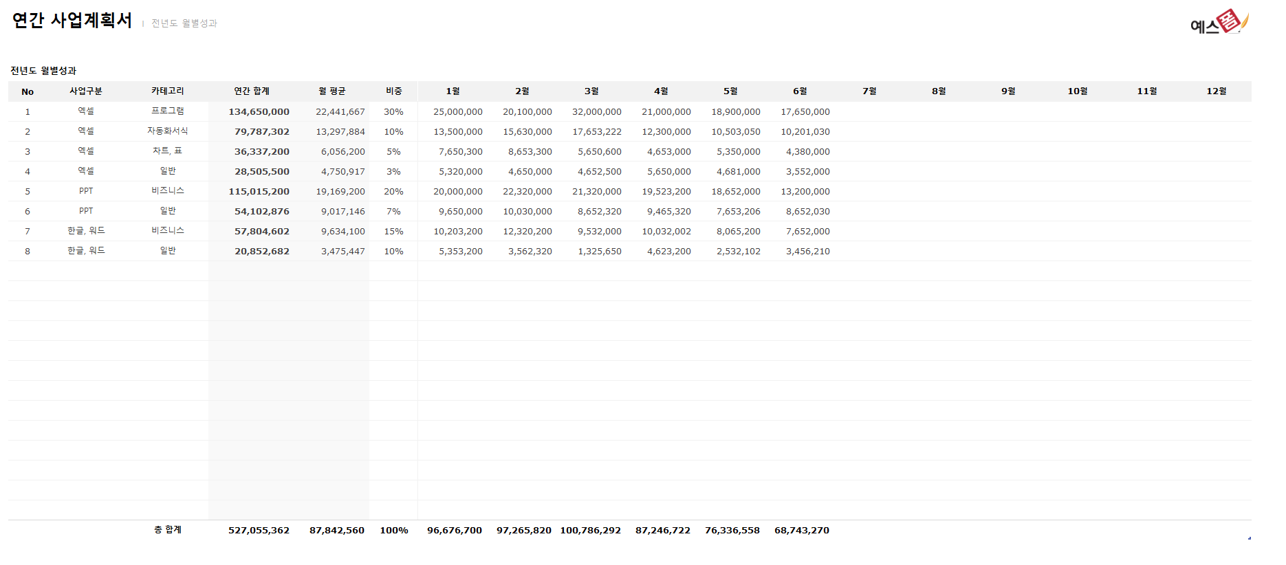 연간 사업계획서 - 예스폼 엑셀서식