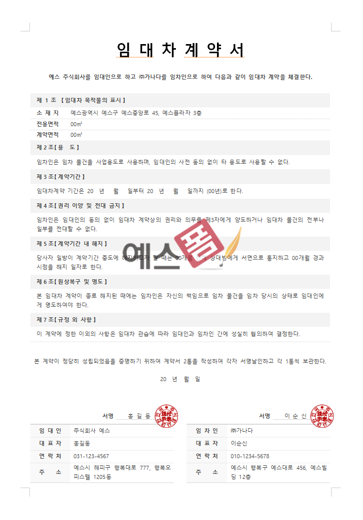 이외에도 다양한 부동산 계약 및 주거 관련 문서 양식을 예스폼에서 손쉽게 확인하고 다운로드할 수 있습니다.