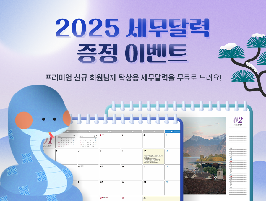 🐍 다가오는 2025년은 푸른 뱀의 해로 을사년이라고도 하죠. 2025년 공휴일 수의 경우 15일, 주말의 경우 104일로 주 5일제 회사 기준 쉬는 날은 총 119일이에요. 새로 시작되는 중요한 세무 일정과 기념일을 놓치지 않으려면 미리미리 준비해야 하는데요. 때문에 예스폼에서는 신규 결제 회원분들을 위해 2025년 세무 달력 이벤트 소식을 준비했어요!