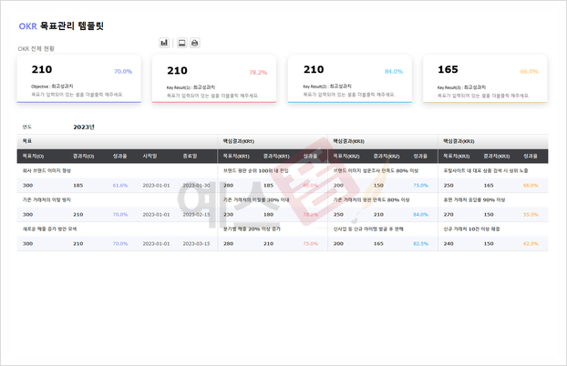 효과적인 목표 설정을 위해서는 연간 목표, 월간 계획, 세부 실행 계획 등을 정리할 수 있는 템플릿이 필요합니다. 한눈에 목표를 확인하고 실천 상황을 점검할 수 있도록 구성된 템플릿을 활용하면 목표 달성 확률이 훨씬 높아집니다.