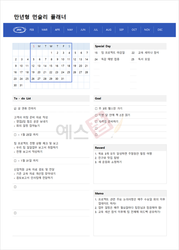 다양한 신년 목표 계획 템플릿 보러 가기
