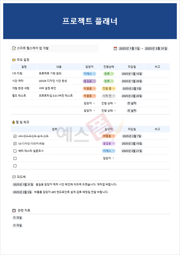 | [Google Docs] 주간 업무 플래너 | [Google Docs] 프로젝트 플래너 | [Google Docs] 업무 타임 테이블 |