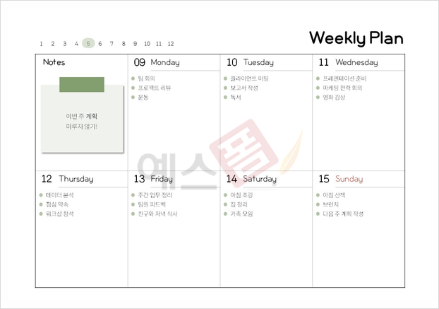 | OKR 목표관리 템플릿 (상세형) | 습관관리 템플릿 | 주간 다이어리 |