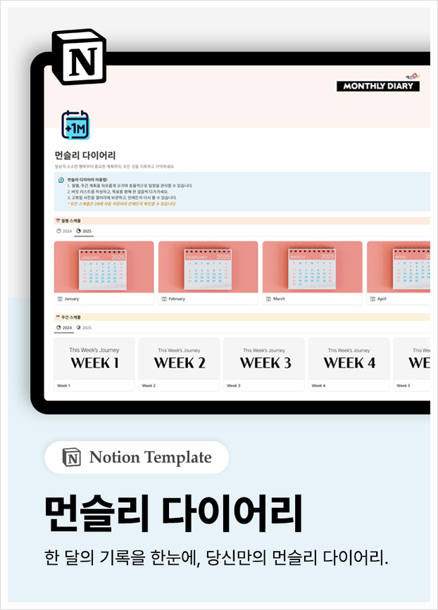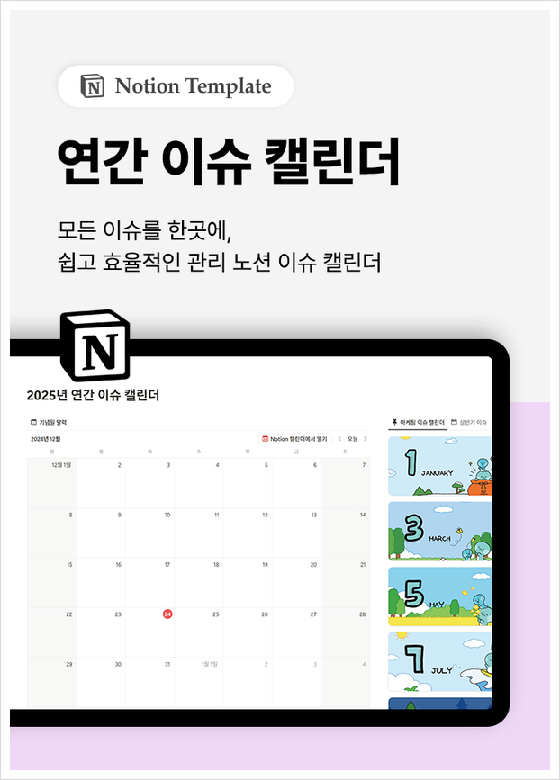 | [노션] 2025년 연간 이슈 캘린더 | [노션] 먼슬리 다이어리 | [노션] 2025년 ROADMAP |