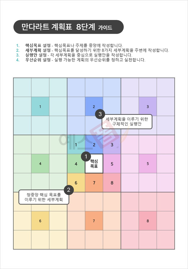 | 만다라트 계획표 | 성취 습관 달성표 (목표 달성관리) | 목표관리 플래너 구글 스프레드시트 |