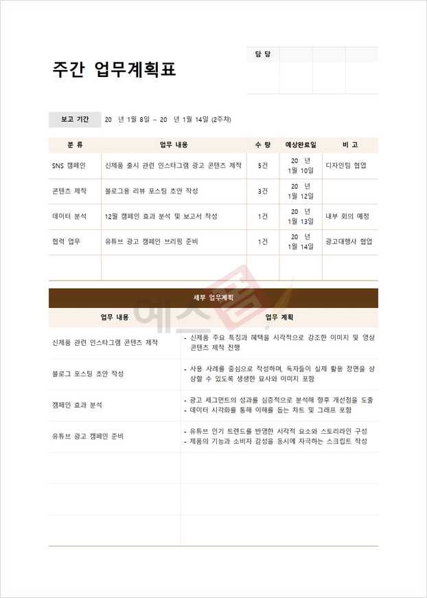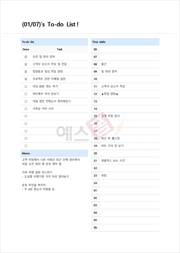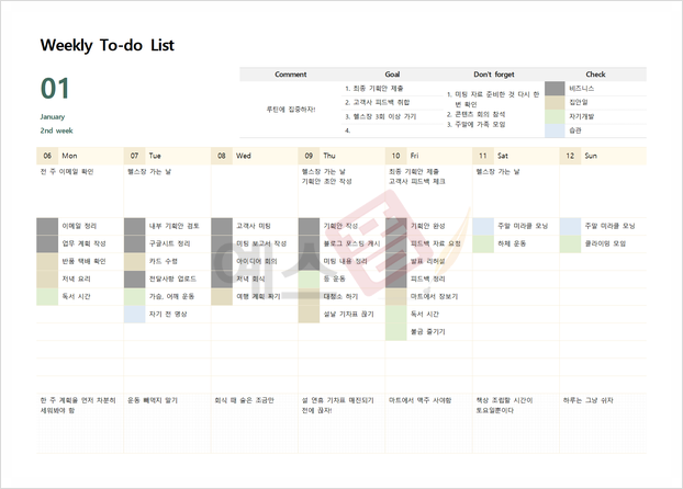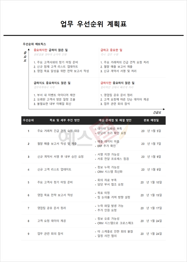 | 업무 우선순위 계획표 | 일간형 투두 리스트 (To-do List) | 주간 업무계획표 |
