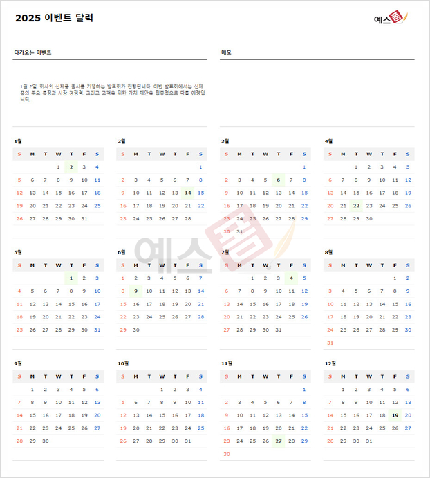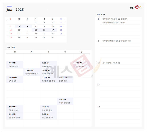 | 학습 일정관리 달력 | [2025년] 이벤트 일정달력 | 청구서 지불계획 달력 |