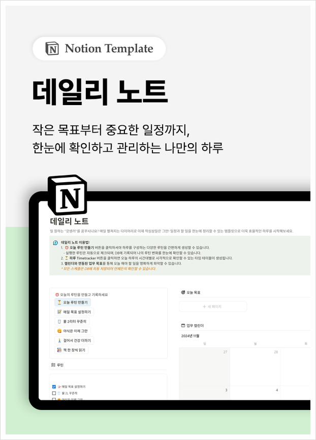 | [노션] 목표 달성 플래너 | [노션] 일정 관리 캘린더 | [노션] 데일리 노트 |