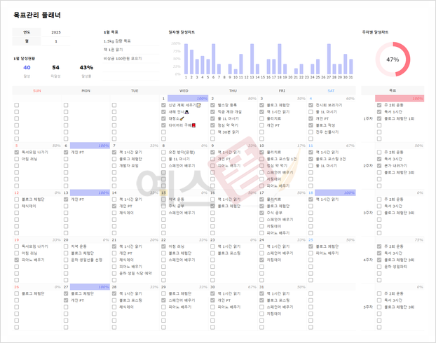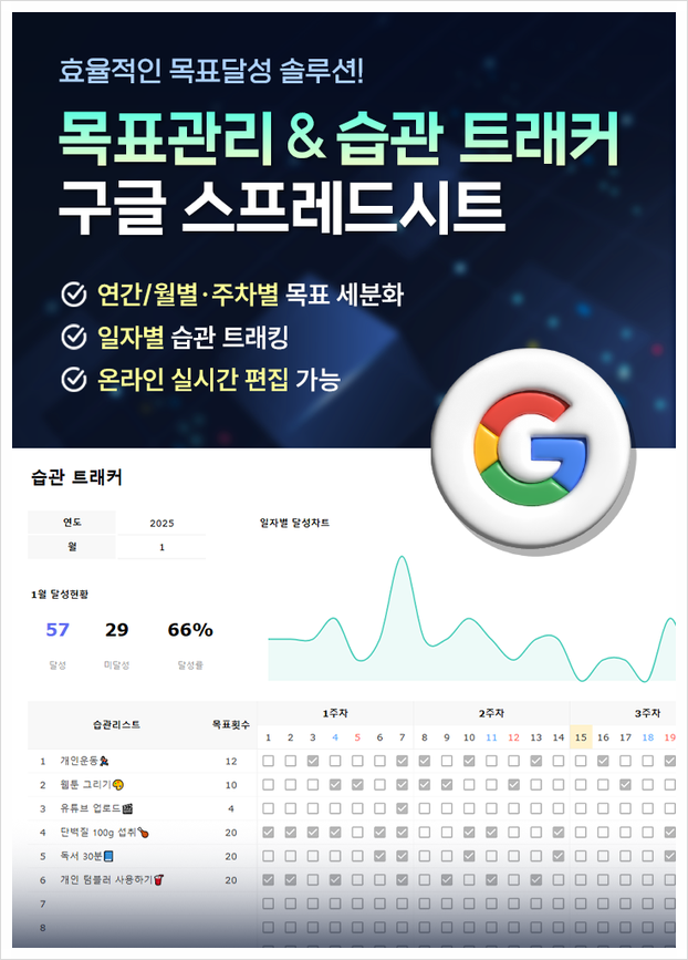 신년 목표관리 플래너 & 습관 트래커 구글 스프레드시트