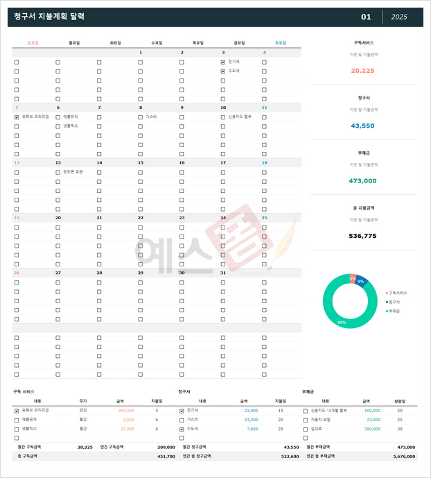 | 학습 일정관리 달력 | [2025년] 이벤트 일정달력 | 청구서 지불계획 달력 |