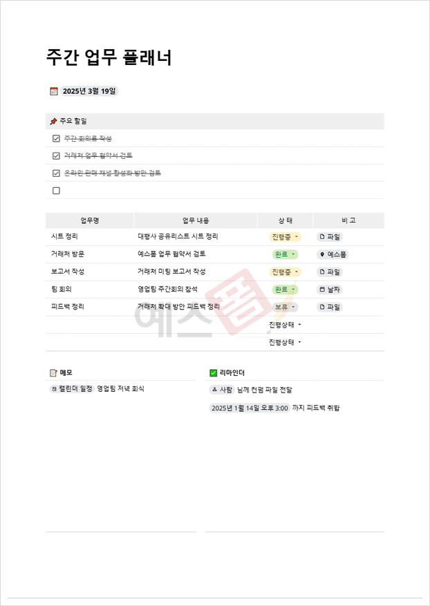| 업무 우선순위 계획표 | 일간형 투두 리스트 (To-do List) | 주간 업무계획표 |