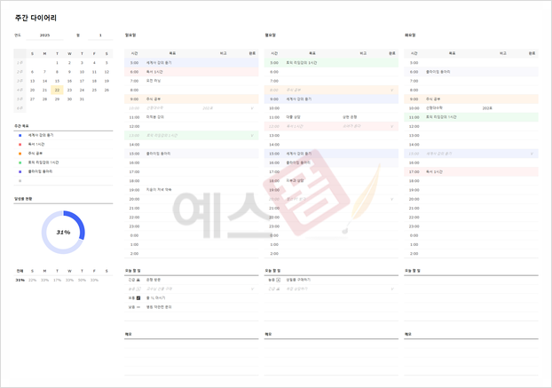 | OKR 목표관리 템플릿 (상세형) | 습관관리 템플릿 | 주간 다이어리 |