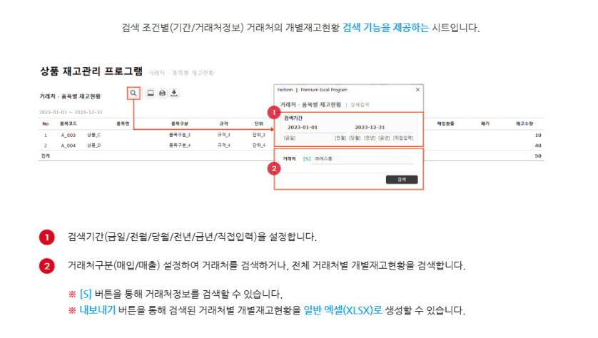 상품 재고관리 엑셀 프로그램(품목/거래처별 재고관리) - 예스폼 엑셀서식