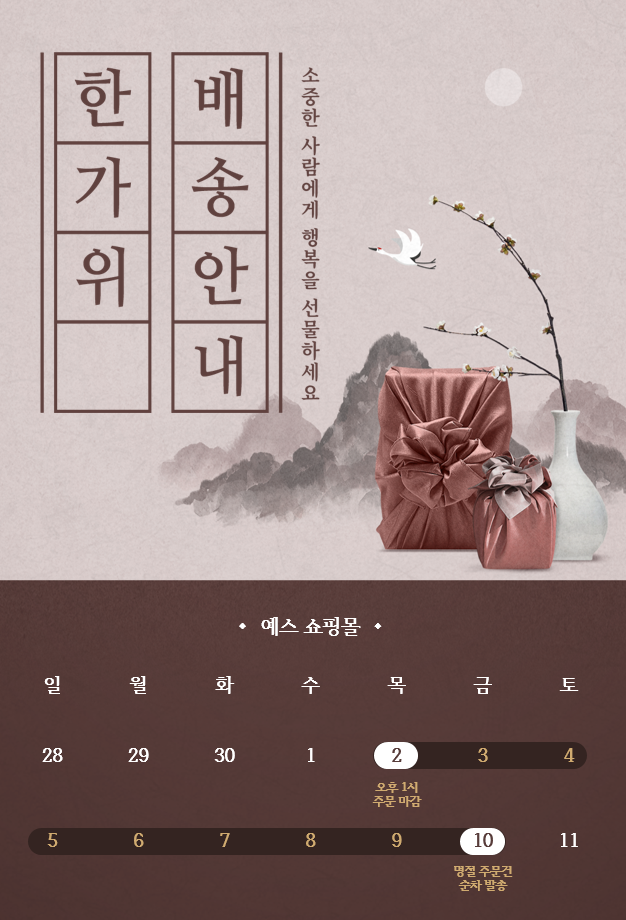 한가위 연휴 배송 안내문 (추석 택배 마감 및 배송)